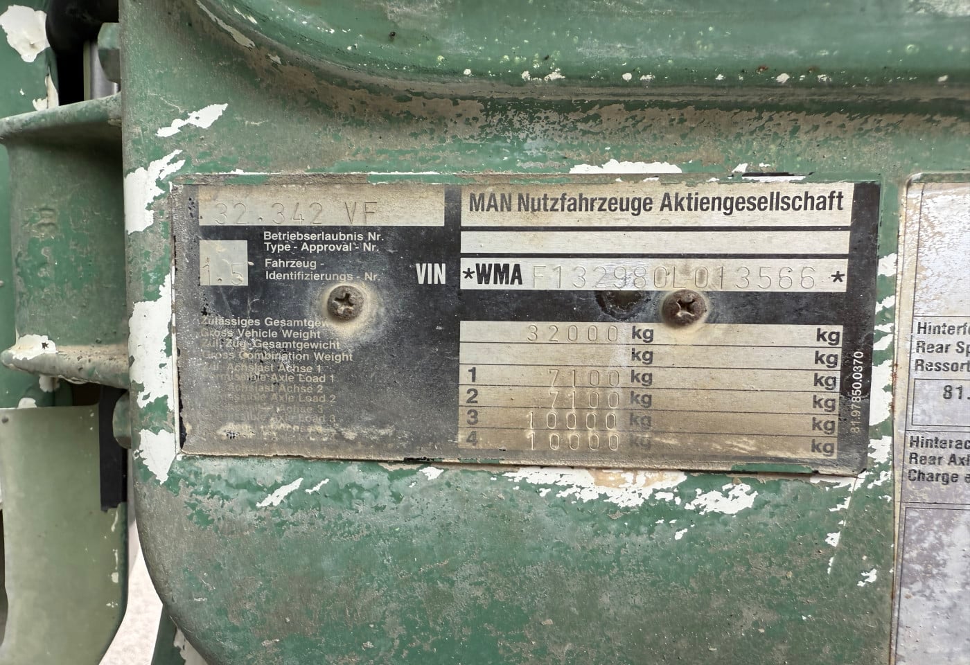 563401 Km, Euro 1, 342 PS, Schaltgetriebe, 32.342 VF Fahrgestell / Chassis-Kabine, 01/08/1996, 8×4