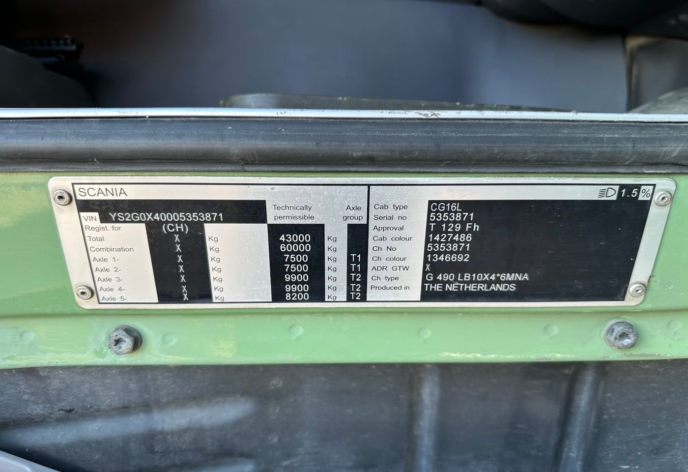 2014 Scania G490 10×4 Chassis-Kabine